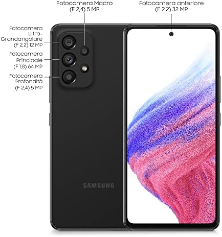 Key Features: Unlocked and SIM Free 5G Ready for the fastest network speeds around Ultra-sharp Quadruple 64, 12, 12 and 5 Megapixel rear camera and 32 Megapixel selfie camera 6.5″ FHD+ 120Hz Display Super fast Octa Core Processor + 6GB of RAM Android 12 OS 128GB Storage + 1TB MicroSD Card Slot Simplicity takes the crownThe Galaxy A53 5G is designed to stand out. With the Ambient Edge blending the camera with the body seamlessly, your Galaxy is entirely beautiful and fully functional with added battery capacity inside a slimmer, matte frame. A cinematic view of your worldFeast your eyes on vibrant details with the FHD+ Super AMOLED display. With the expansive 6.5 Infinity-O display, enjoy vivid outdoor visibility up to 800 nits while reducing blue light with the Eye Comfort Shield. Awesome camera, Always sharp and steady with OISThe multi-lens camera on the Galaxy A53 5G takes photos to the next level. Get crisper, clearer shots with the 64MP OIS camera, expand your viewing angle with the Ultra Wide camera, customize focus with the Depth camera and get closer to details with the Macro camera. Awesome battery, lasts two daysA 5,000 mAh battery for more time streaming, sharing, gaming and more. Quickly revive your Galaxy with up to 25W Super Fast Charging and enable adaptive power saving to enhance the overall battery performance. Now spill, splash and splatter resistantRated IP67 for water and dust-resistance, the Galaxy A53 5G stands up to 1.0 meter of fresh water for several minutes. With additional protection from Gorilla Glass 5, your device is now tougher and less prone to scratches. Simply touch to unlockStep right in. With the built-in on-screen fingerprint sensor, you can instantly log in to your apps and websites without compromising on security.