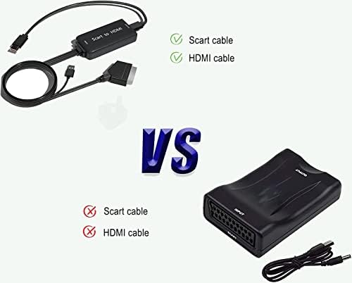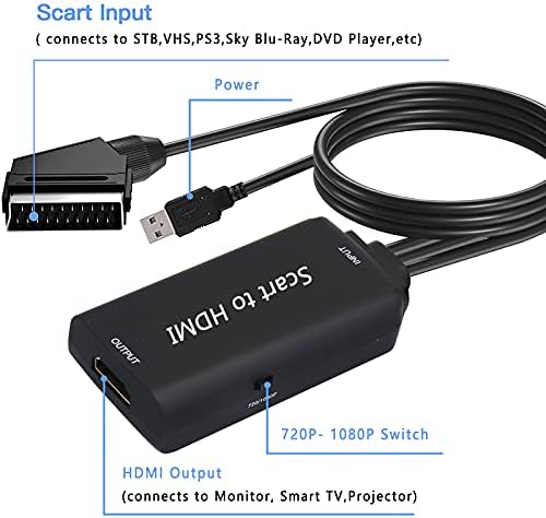 Scart to HDMI Converter, Tihokile Scart to HDMI Cable for DVD Player to TV Full HD 720P/1080P Video&Audio Adapter Compatible with VHS STB DVD VCR PS2 PS3 Sky Blu-ray TV Monitor Projector