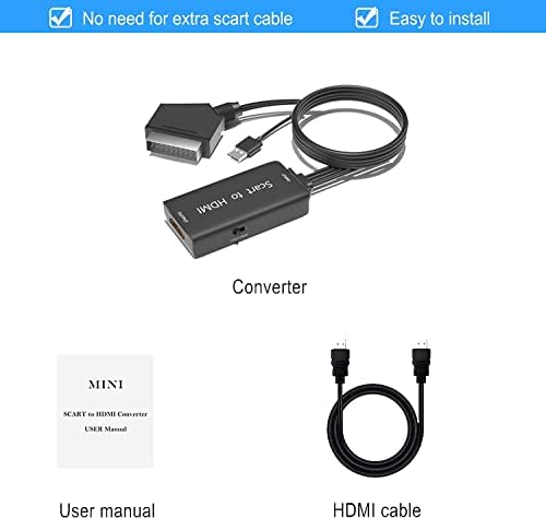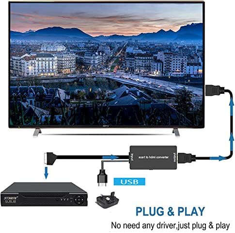 ????【Extensive Compatibility】 SCART input interface connect STB, Blu-ray, DVD, VHS, SKY, PS2, and PS3. HDMI Output Interface connecting TV, Monitor, Projector. Supports PAL, PAL / M, PAL / N, NTSC3.58, NTSC4.43, SECAM format. (Note: Supporting CVBS signals without supporting RGB signals.)