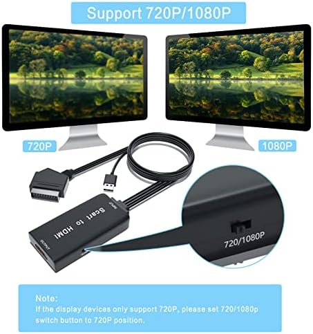 ????【Easy Switching 720P / 1080P】 You can use the SCART to turn the HDMI converter switch button to convert the composite signal to 720p / 1080p, bring you clear visual experience. Support for 16: 9 screen output ratios.