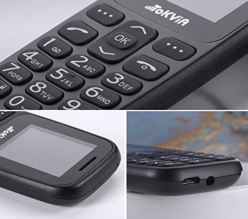 Senior Mobile Phone Unlock, TOKVIA T101 1.77 Inch Display Mobile Phone for Elderly with SOS Button and Flashlight, Black