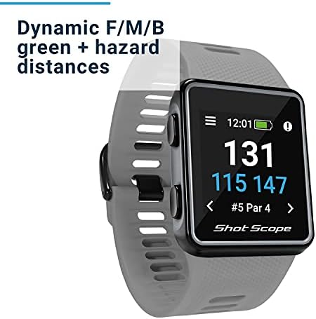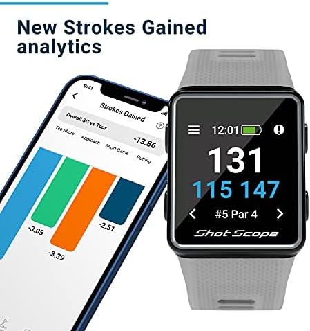 Shot Scope V3 GPS Golf Watch – Automatic Shot Tracking – F/M/B + Hazard Distances – Strokes Gained – iOS and Android Apps – 100+ Statistics, 36,000+ Pre-Loaded Worldwide Courses – No Subscriptions