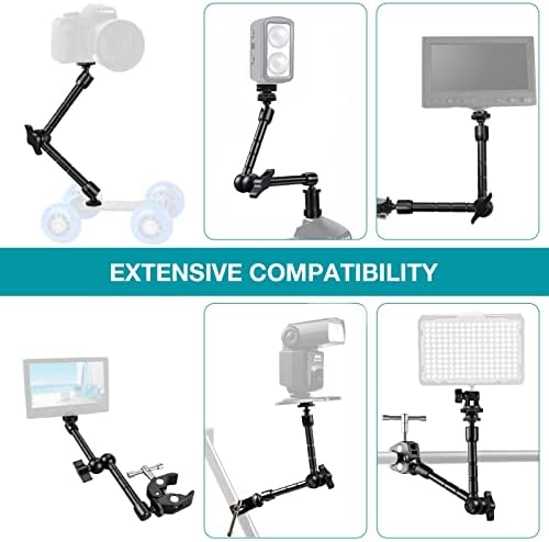 Sinvitron® 11 inch Magic Monitor Arm + Large Super Clamp Large Crab Pliers Clip for DSLR Rig Camera to Monitor LED Light
