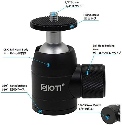 SIOTI Tripod Mini Ball Head Tripod Mount Head-Metal Ballhead 360° Pan 90° Tilt Tripod Mount with 1/4″ Screw for Digital Camera / Compact DSLR / Cell Phone / Monopod / Gopro / Light Stand / Light House