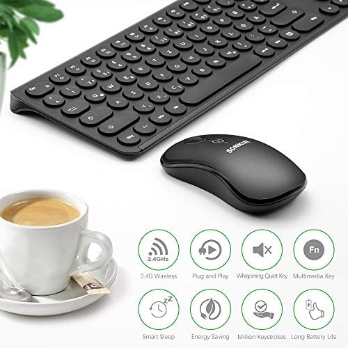 Sonkir K-20 Wireless Keyboard and Mouse Combo, 2.4GHz Rechargeable Ultra-thin Full-size Keyboard with Silent 3-Adjustable DPI Mouse Set for Windows, Laptop, PC Computer, Smart TV (Black)