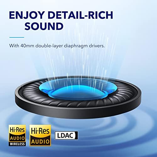 Hear Every Detail: The 40mm drivers have a pioneering double-layer diaphragm made from silk and ceramic materials to produce sound with intense bass and crisp treble. Space Q45 noise cancelling headphones also support LDAC for Hi-Res Audio Wireless sound.