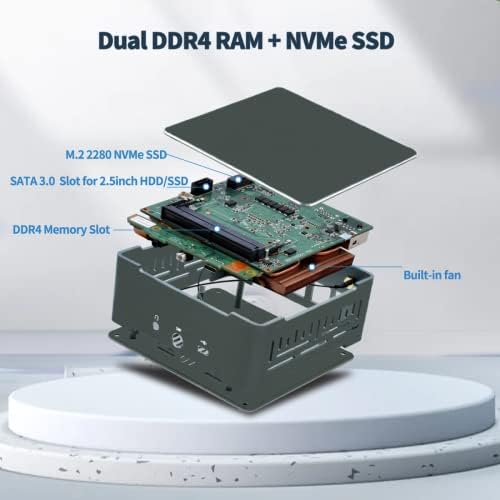 【Large Capacity Storage】The amd ryzen mini pc is equipped with dual DDR4 RAM (up to 32GB), 1 x M.2 NVMe SSD, 1 x SATA3.0 Slot for 2.5 inch HDD/SSD. You can also use an external hard drive (up to 4TB) to expand the hard drive capacity. It can handle multiple tasks smoothly and store a large number of files and movies. This mini computer will make your life more exciting.