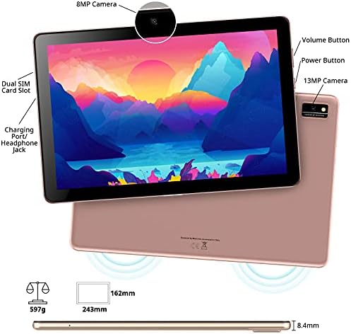 Tablets 10 inch, Blackview Tab 10 Android 11 Tablets,Dual SIM 4G LTE+5G Wifi,MTK8768 Octa-Core,4+64GB/SD 128GB,7480mAh Battery+18W Fast Charging,13MP+8MP Camera,Face ID,GPS, Bluetooth,Type-C-Rose gold