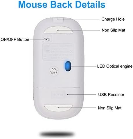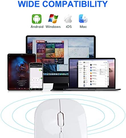 Tasnme Wireless Bluetooth Mouse for MacBook Pro/Air/Mac/iPad/Laptop/Desktop/Mac/PC/Computer/Phone-Portable Slim Silent Office Mice 2.4 GHz USB Wireless/BT Mice White