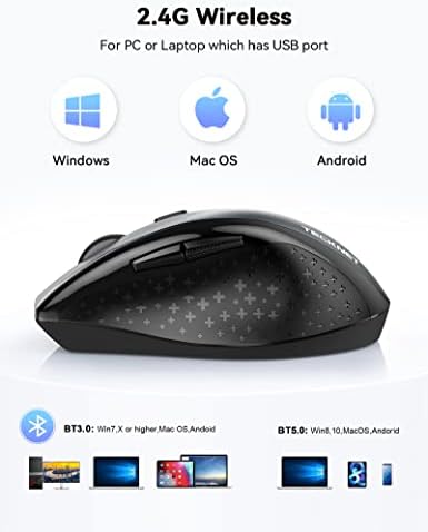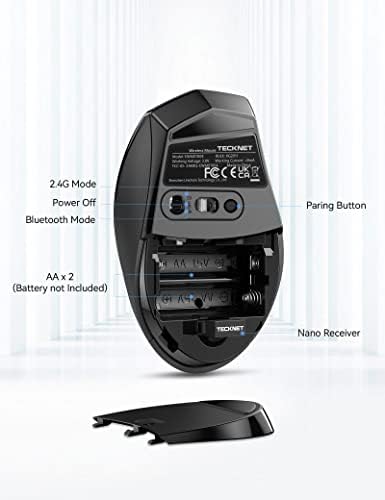 TECKNET Bluetooth Mouse, 2.4G USB Classic Wireless Mouse, 3200DPI 6 Adjustment Levels Mouse, Up to 24 months battery life With Battery Indicator, Works with Windows XP, VISTA, 7, 8 and 10 (Grey)