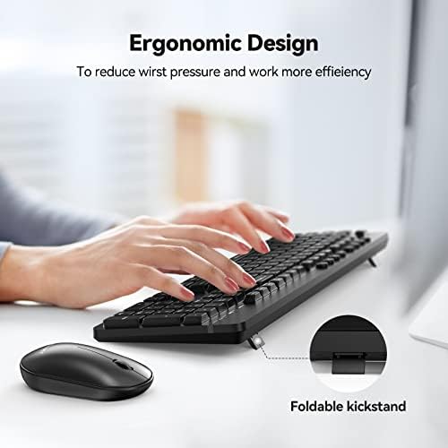 Enjoy Wireless Freedom: This full size keyboard and mouse combo adopts 2.4 GHz wireless technology, ensuring a stable and reliable connection with a distance of up to 8 meters. The USB Receiver is inside the battery compartment of the mouse