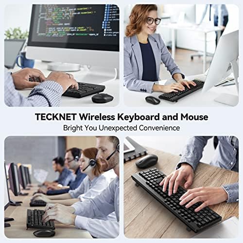 TECKNET Wireless Keyboard and Mouse Set, 2.4G Full-Size Ergonomic Cordless Keyboard and Mouse Combo with Nano USB Receiver, 12 Multimedia Shortcuts for PC / Laptop / Computer / Mac