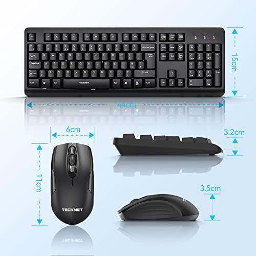 TECKNET Wireless Keyboard and Mouse Set, Ergonomic 2.4G Cordless Keyboard & Mouse Combo with Nano USB Receiver for PC, Laptop, Computer – QWERTY, UK Layout