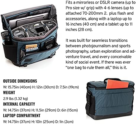 The DNA 16 Pro Messenger Bag will fit a mirrorless or DSLR camera (up to Pro size w/ grip) with 4-6 lenses (up to attached 70-200mm 2.8) plus flash and accessories, along with a laptop up to 16 inches (40 cm) and a tablet up to 11 inches (28 cm) such as the iPad 11 Pro. It was built for seamless transitions between photojournalism and sports photography, urban exploration and adventure travel, and every conceivable kind of social event. If there was ever “one bag to rule them all,” this is it. The DNA Messenger is often imitated, never duplicated, and always ready for work. It features a Quick Access top zipper, a seam-sealed and completely waterproof bottom, Tenba’s signature Whisper-Hook quiet closure, and a removable camera insert.
