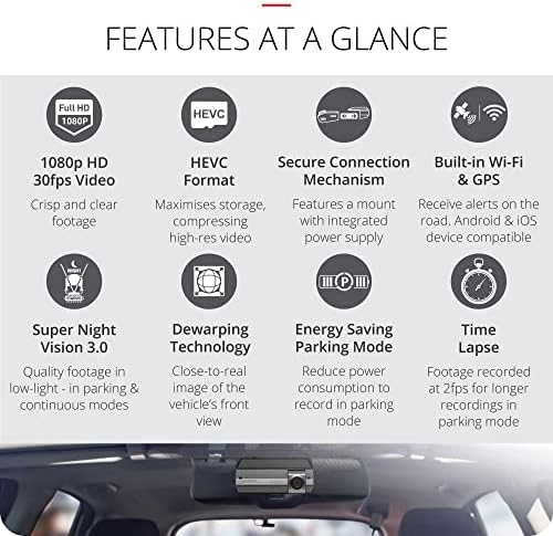 REVOLUTIONALISED NIGHT TIME VISION: The Super Night Vision captures the best quality footage in low lighting whilst in Parking and Continuous Modes. Paired with a Digital Overlap High Dynamic Range and Noise Cancellation Technology, this dash cam for cars captures far greater detail at night, protecting your vehicle at all times