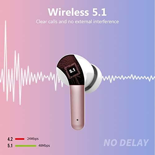 Wireless 5.1 and One-Step Pairing: Bluetooth headphones have wireless 5.1 will automatically connect to the last paired device when open the lid of charging case. wireless 5.1 provide stable transmission without interruptions.