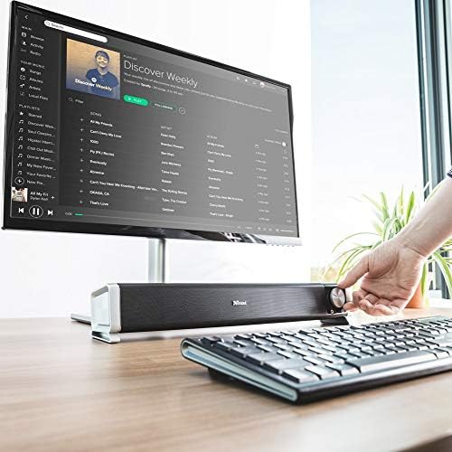 Trust Asto PC Soundbar, USB Powered Speaker Set, Rich Stereo Sound System 12 W Peak Power, Illuminated Volume Control, Speaker for PC, Monitor, TV – Black