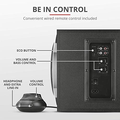 Trust Tytan 2.1 PC Speakers with Subwoofer, 120W (60W RMS), UK Plug, Sound System with Wired Volume Control, Jack 3.5 mm, Computer Speakers for PC, Laptop, TV, Tablet and Smartphone – Black