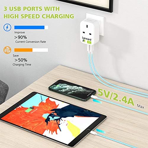 UK to US Plug Adapter with 3 USB Ports, LENCENT Grounded America Travel Adapter for USA Mexico Canada Thailand and More (Type B)
