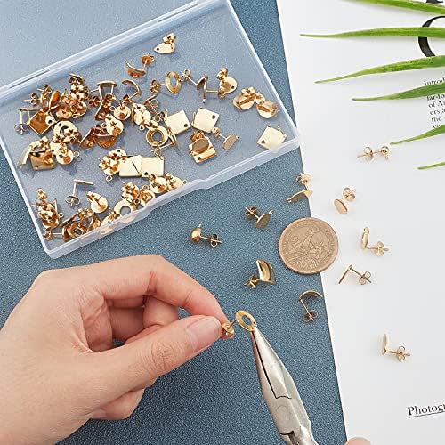 UNICRAFTALE about 90pcs 9 Mixed Shape Hypoallergenic Stud Earrings with 110pcs Earring Backs Stainless Steel Earring Post with Hole Earring Components for Jewelry Making Golden,0.7/0.8mm Pin