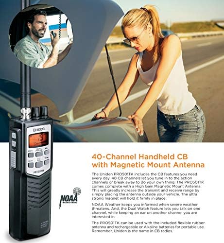 Uniden PRO501TK Pro-Series 40-Channel Portable Handheld CB Radio, Two-Way Emergency Radio, includes High-Gain Magnet Mount Antenna, Auto Noise Limiter, NOAA Weather, and Full Channel Scan
