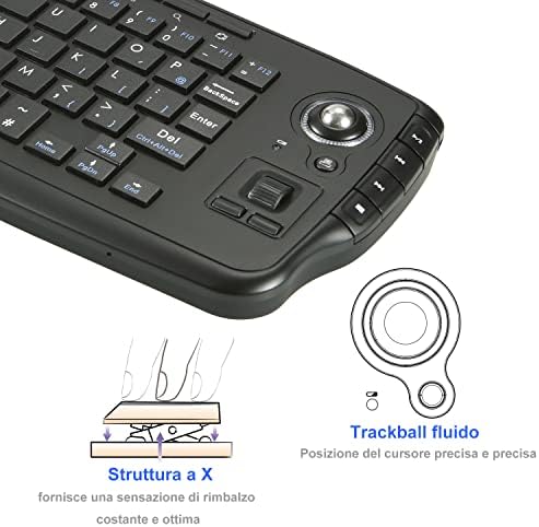[Updated] Fonicer Multimedia 2.4Ghz Wireless Mini Keyboard with Trackball Mouse Scroll Wheel for PC/Mac/Android Tv Box, Remote Controller,X Structure,QWERTY UK Layout