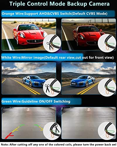 【3 Control Modes】Newest car reversing camera switches CVBS and AHD video signal output by cutting the orange wire(perfect for nav and reversing monitor).Switch the mirror/normal image by cutting the white wire, which can be used as front camera or rear camera for more installation needs.ON/OFF guide line by cutting the reversing cameras green wire. Automatic brightness adjustment, no distortion effect, present the most realistic reversing effect for you. (Perfect for sedan/SUV/Pickup/RV/Van).