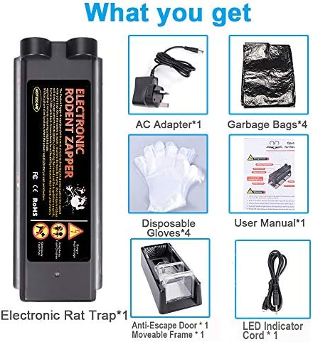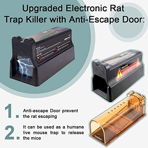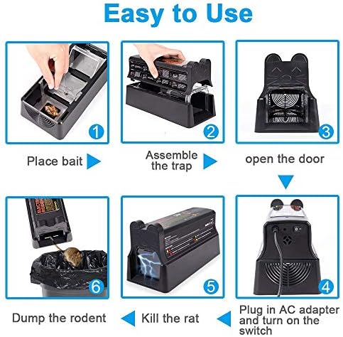 Highly Effective, Reusable Rodent Solution:Easy to Use, Just 6 simple steps to use this mouse trap electric- place bait; assemble the trap; open the anti-escape door; turn on the switch; rats traps that kill the rats instantly with 7000V shock and dump the them to the trash can.