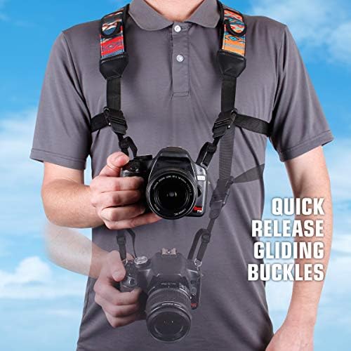 EASY TO USE QUICK-RELEASE BUCKLES: Makes setting up and removing the camera from the harness simple | DUAL LENGTH SLIDING STRAP BRACKETS: Provides a great holster for photographers of all sizes