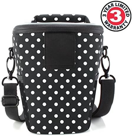 USA Gear SLR Camera Small Case Bag for Men and Women with Top Loading Accessibility, Adjustable Shoulder Sling, Padded Handle – Comfortable, Durable and Light Weight for Nikon, Canon, etc (Polka Dot)