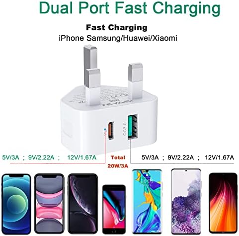 Universal Compatibility: TEYASI USB C Wall Charger Supports Power Delivery 3.0/2.0 and QC 3.0/2.0, the PD Charging plug with USB C to lightning cable can quick charge for iPhone 13/13 Pro/13 Pro Max/12/12 Pro/12 Pro Max/12 Mini/SE 2020/11/11 Pro/11 Pro Max/XR/XS/X/8/7 iPad Air 2020 etc .And the type C plug with USB C to C Cable Support Fast charge Samsung Galaxy S21S20 S10 Plus S9 S8 S7 A20s A21s A41 A50 A51(5G) A60 Note9 Xiaomi Redmi Note8 etc (NOT included Cable)