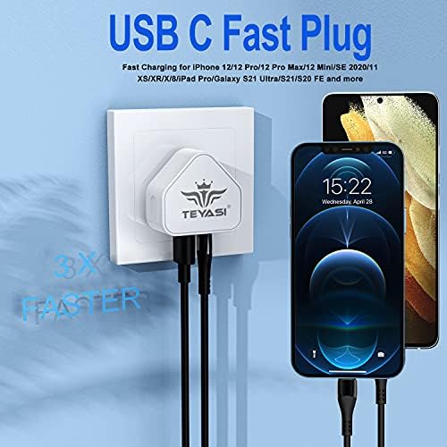 USB C Plug Fast Charge,TEYASI 20W USB C Charger Power Adapter UK Type C PD Wall Plug Fast Charging for iPhone 13/13 Pro/13 Pro Max/12/12 Pro/12 Pro Max/12 Mini/SE 2020/11/11 Pro,iPad,Samsung S21 etc