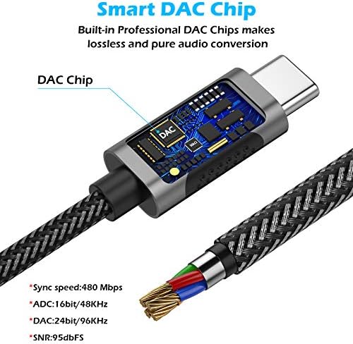【Smart Hi-Res DAC Chip 24bit/96KHZ】 – iMangoo Type-c to 3.5mm aux adapter Built-in intelligent DAC chip converts digital audio signals into analog audio signals and maintains the original sound quality of your headphones. Noise suppression and high interference suppression offer you the best listening experience.