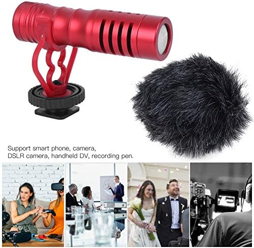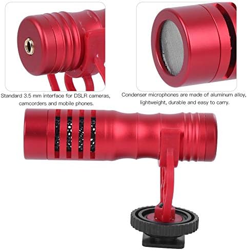 Video Microphone, Mini Portable 3.5mm Interface Cardioid Condenser Pickup HD Sound Resolution On-Camera Microphone Video Recording Mic with Muff Windshield for Camera Camcorder Phone(Red)