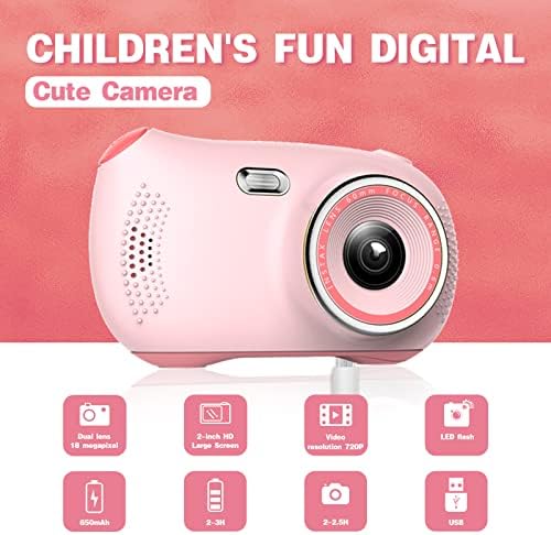 VIKILEE Children’s Digital Photo Camera Children’s Photography Digital Camera with 2.4 Inch IPS Screen, 720P HD, 32G TF Card, Gift for Boys and Girls (Light Pink)