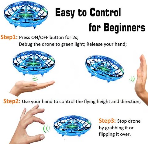 【Easy to Control by Kids】: The flying toys will magically fly in the opposite direction when your hands are close to it. put your hands underneath it, it will fly upwards. Start the interactive play just by throwing the mini drone in the air grab & flip it to stop.
