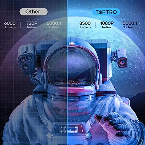 ????〖Native 1080P & Extra Carry Case〗 — TOPTRO X1 Projector native resolution is 1920*1080P (support 4K), 8000 lumens, 10000:1 contrast Ratio, which Improve your image more 30% resolution brightness.