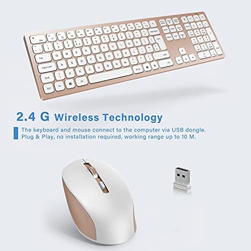 Plug and Play: Simply plug in the USB dongle ( back of the mouse) and you can work the keyboard and mouse, 2.4G wireless technology offer you more reliable and stable connection