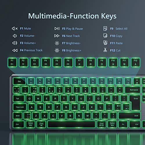 Wireless Backlit with 4 Bluetooth Connection Channel, Rechargeable Illuminated Keyboard UK Layout, Silent Ultra-Thin, for Windows XP/7/8/10, Mac OS, Android, iOS, Space Gray