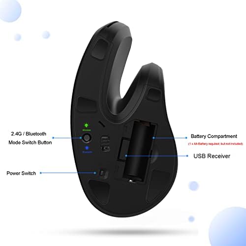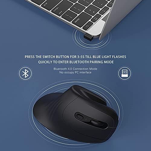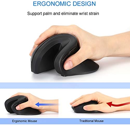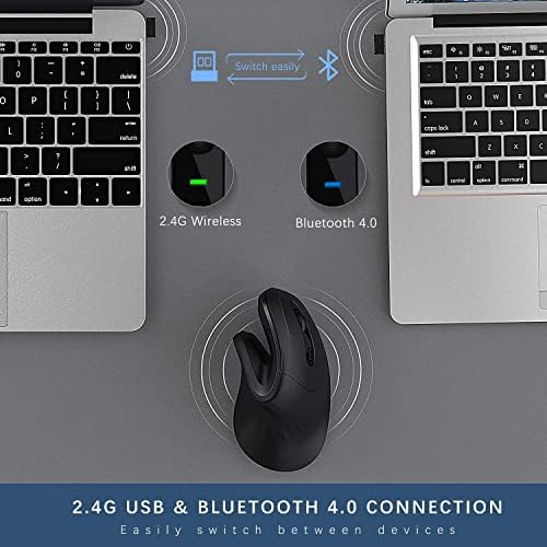 Wireless Bluetooth Ergonomic Vertical Mouse, 2.4G Cordless Upright Mice for RSI with 3 Adjustable DPI (1000 / 1600 / 2400) for PC Laptop Computer Macbook iPad, Black