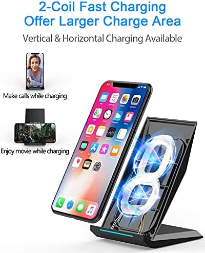 ▶【2-COIL Fast Wireless Charging】- Built-in two coils offer you much wider charging area. 1.4 times faster than standard wireless charger. This Quick Charge 2.0 wireless charging stand will juice up your compatible device from dead to full in a short amount of time.