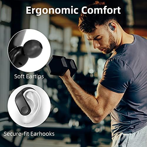 Engineered Design For Sports:Adjustable and secure-fit silicone ear hooks and ergonomic design ensure your sport earbuds stay comfortably firm in place when doing sports, running, jogging, hiking & other outside activity etc. IPX7 waterproof protects the sports wireless earbuds headphones from water drop or sweat damage.
