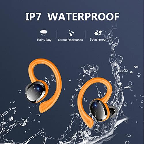 Wireless Earbud Dascert Bluetooth 5.3 Headphones with Mic LED Display, 48H Wireless Headphones Hi-Fi Stereo Sound Noise Canceling Earbud, IP7 Waterproof Sports Wireless Earphones Orange [2022 Updated]