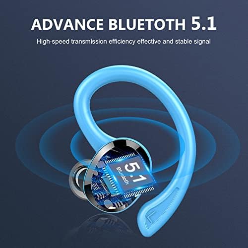 Wireless Earbud, Dascert Wireless Headphones with Mic LED Display, CVC8.0 Noise Canceling Earbud, Type-C 48H Bluetooth 5.1 Running Headphones, IP7 Waterproof Wireless Earphones Blue Headsets for Sport