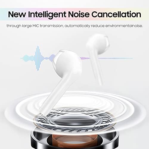 Wireless Earbuds, Wireless Headphones Bluetooth 5.0 Headphones 3D HiFi Stereo Headphones Noise Cancellation in-Ear Built-in Mic with Charging Case, IPX7 Waterproof for Work, Travel (White)