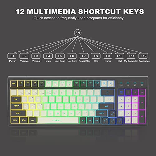Wireless Gaming Keyboard.4G Rechargeable RGB Pink Gaming Keyboard,RGB Backlit Ergonomic 98 keys Dual Color Mechanical Feeling Keyboard for Office Windows PC Mac PC Xbox PS4 PS5 Gamer(Gray & White)