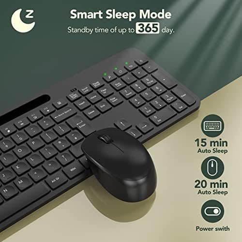 【Auto Sleeping Mode】Wireless keyboard mouse combo have a power switch to turn on/off, saving unnecessary battery loss. And features with smart sleep mode for saving power, press any button or key to wake up.