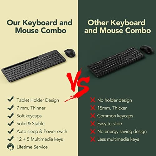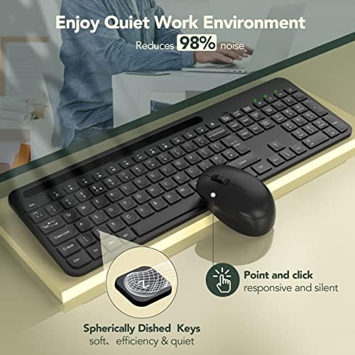 Wireless Keyboard and Mouse Set, 2.4 GHz Cordless Ultra-Slim Full Size Keyboard with Phone Tablet Holder, 1600 DPI Silent Mouse, 18 Shortcut Keys, for Computer, Laptop, PC, Windows, Chrome OS