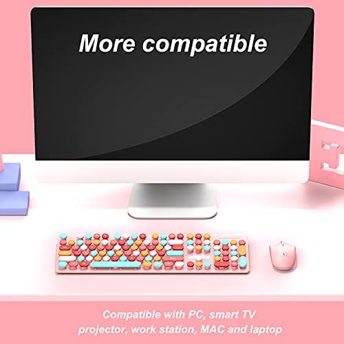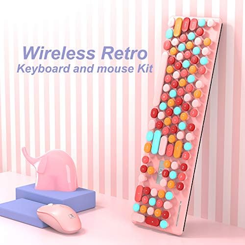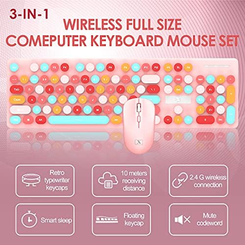 Wireless Keyboard and Mouse Set, 3800mAh 2.4G Wireless Rechargeable Keyboard Mouse Combo, Cute Candy Color Retro Keyboard, PBT Cute Retro Round Key Caps + 24000DPI Ergonomic Mouse (Cherry Pink)
