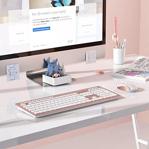 Wireless Keyboard and Mouse Set, Full Size Wireless Mouse and Keyboard Combo with Nano USB Receiver, 2.4G Silent USB Wireless Keyboard Ergonomic with for PC Desktop Laptop, QWERTY UK(Pink)